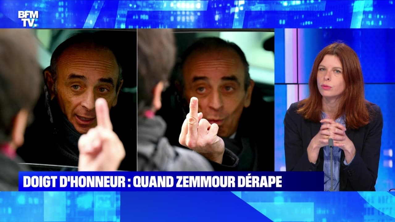 10 hours agoAu terme dun déplacement chahuté à Marseille Eric Zemmour a été visé par un doigt dhonneur de la part dune passante et a répondu par le même geste. Elle lui a fait un doigt dhonneur avant quÉric Zemmour nen fasse un à son tour en affirmant et bien profond pendant que sa conseillère Sarah Knafo riait a rapporté le photographe. Elle travaillerait avec Eric Zemmour affirme le magazine.